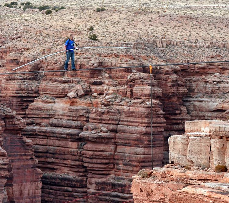 5 years ago, aerialist Nik Wallenda became the first person to walk a high wire across the Little Colorado River Gorge near Grand Canyon National Park in Arizona. It was the highest walk of his career, and he completed it in just less than 23 minutes. Wallenda made the quarter-mile traverse on a 2-inch-thick steel cable some 1,500 feet above the gorge… without a safety harness! In June of the previous year, Wallenda, a member of the famous Flying Wallendas family of circus performers, also became the first person to walk a tightrope over Niagara Falls. Nik Wallenda made his professional debut as an aerialist at age 13. He went on to set a number of Guinness World Records, including the longest tightrope crossing on a bicycle and the highest eight-person tightrope pyramid. In 2011, Wallenda he and his mother successfully completed the high-wire walk in Puerto Rico that had killed his great grandfather Karl Wallenda.